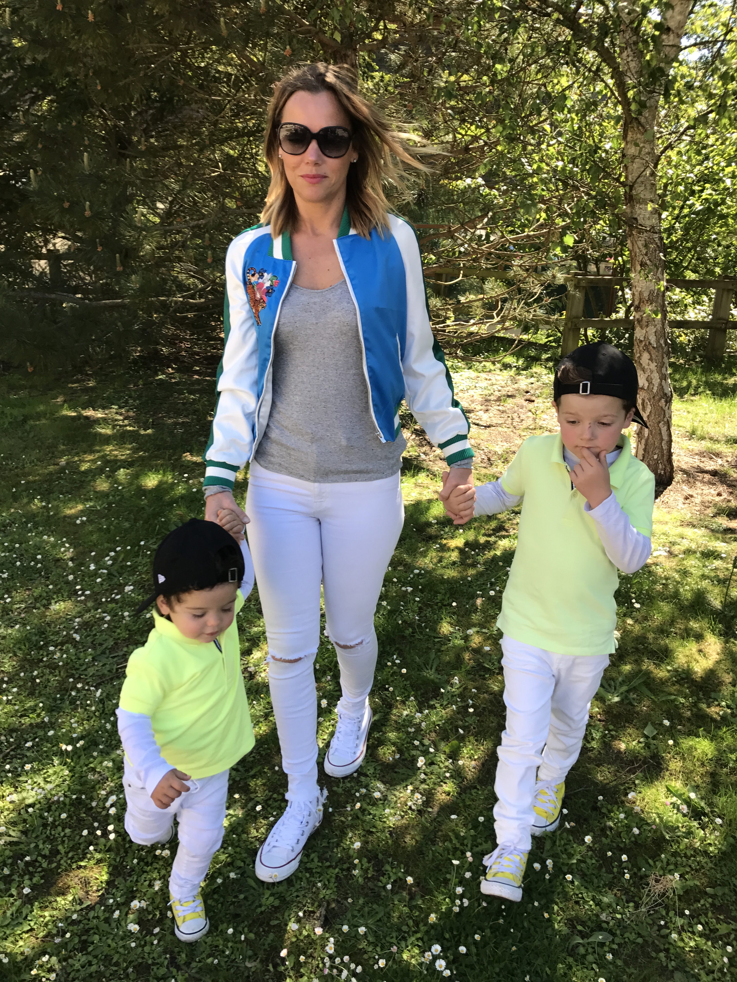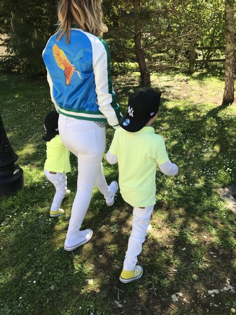 Aujourd’hui c’est mon envie, donc j’ose sur mes garçons le jean blanc, polo jaune et converse jaune, of course pour rappeler le haut! j’aime ce petit détail de rappelle de couleur. Sans oublier la casquette, qu’ils ne veulent plus quitter depuis que je leur ai acheté, ça fait un petit côté « branchouille »…